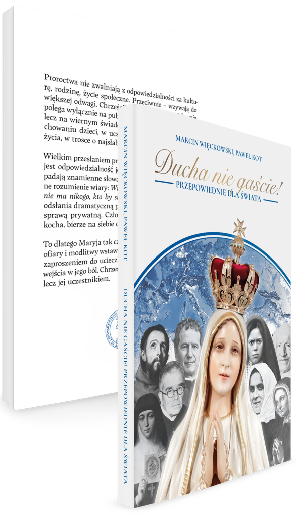 Odbierz wyjątkową książkę „Ducha nie gaście! Przepowiednie dla świata” i przekonaj się, czym naprawdę jest proroctwo w nauczaniu Kościoła oraz dlaczego w czasach niepokoju tak ważne jest rozeznawanie prawdziwych objawień (wartość książki – 12 zł). Wraz z publikacją otrzymasz od nas w prezencie: