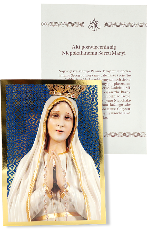 • obrazek z wizerunkiem Matki Bożej Fatimskiej i z Aktem poświęcenia się Niepokalanemu Sercu Maryi na odwrocie;